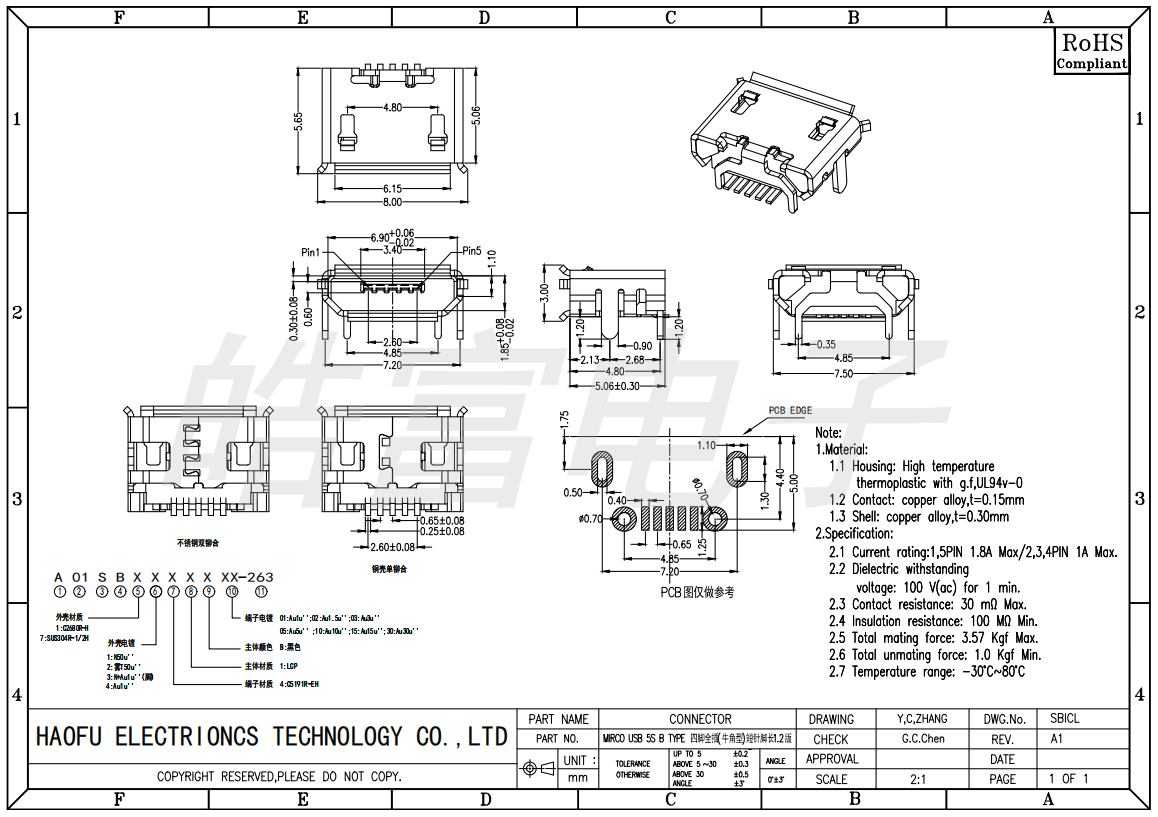 MIRCO USB连接器 5S B TYPE 四脚全插(牛角型)短针脚长1.2版-1