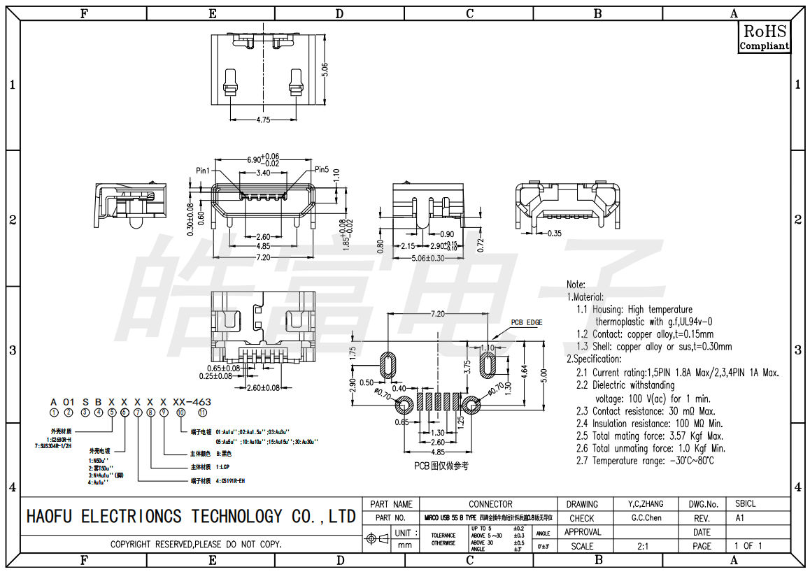 下一个:Micro usb 5s B Type有焊脚插板5.9有柱无导位加长0.75脚长1.25 1
