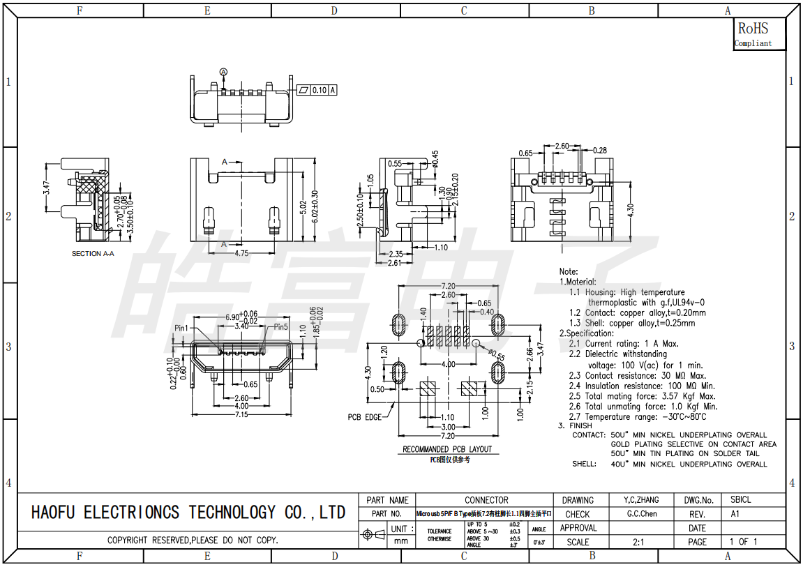 下一个:MICRO USB 5P B 180°插板脚长1.50卷边 1