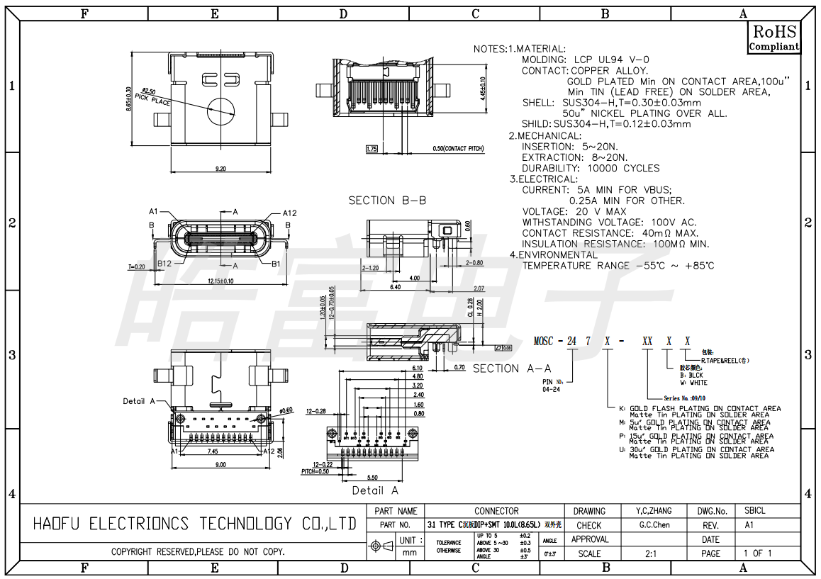 TYPE-C 24PIN沉板DIP+SMT 10.0L(8.65L)双壳 3