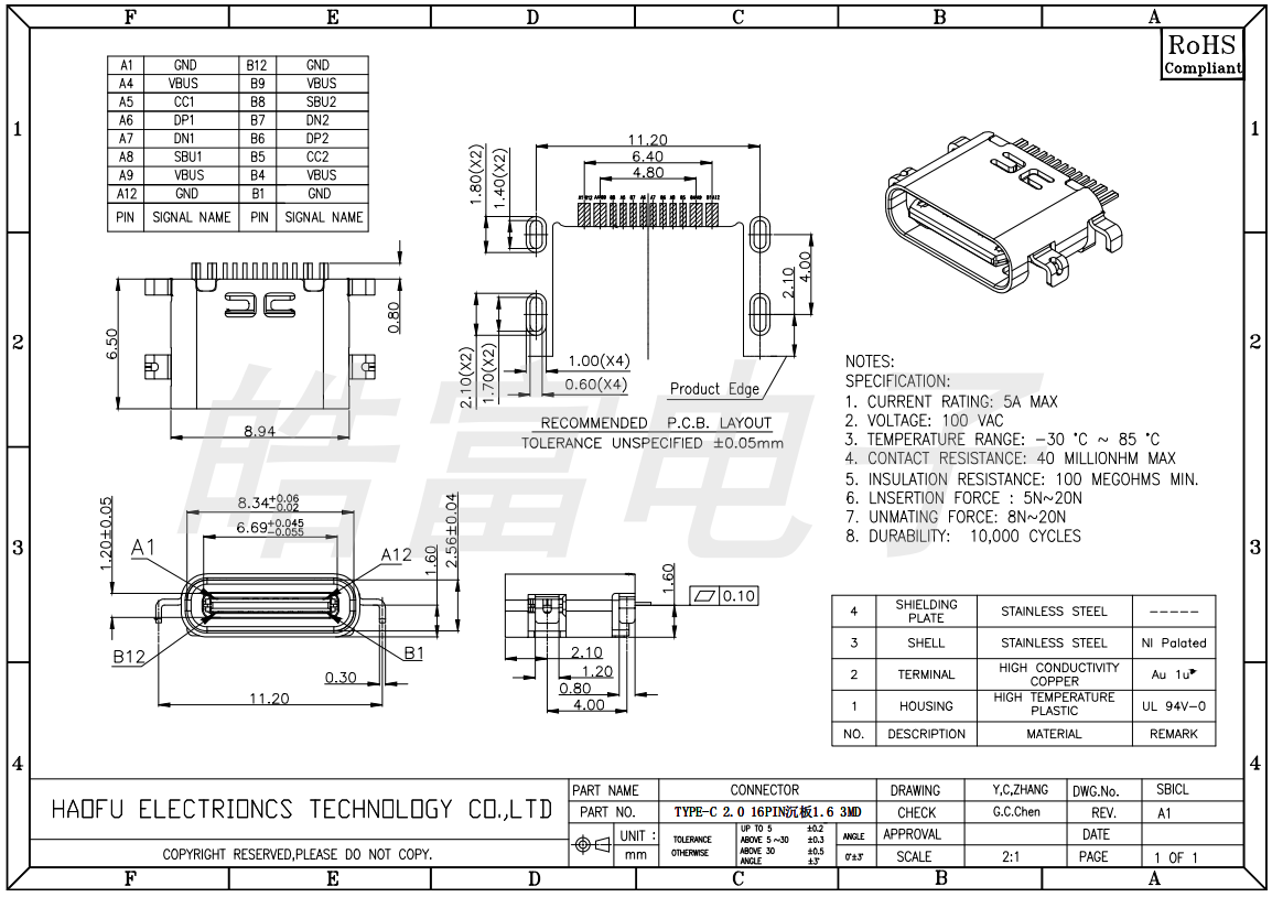 下一个:TYPE C 6PIN贴板带钩 3