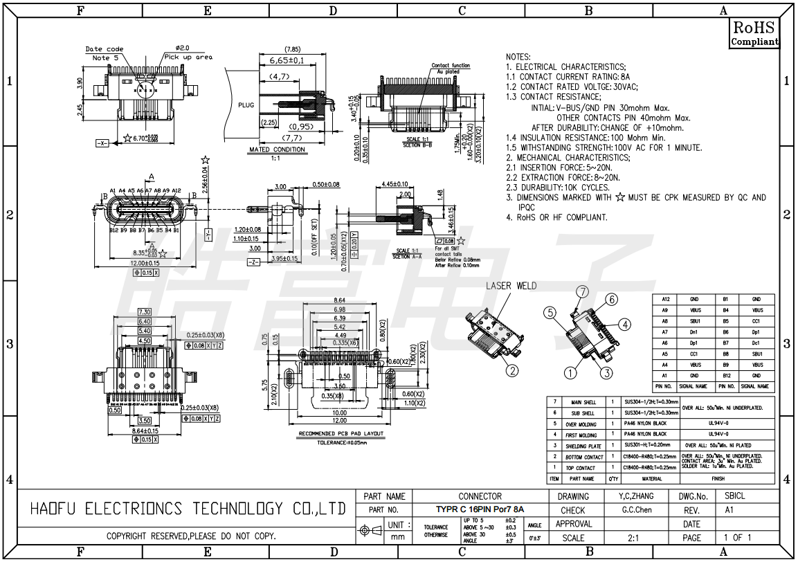 下一个:USB2.0 Type C 16Pin Pro 8A 1