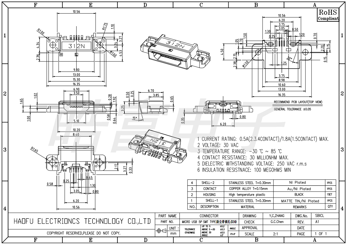 MICRO USB 5P SMT TYPE防尘带锁孔(X20) 1