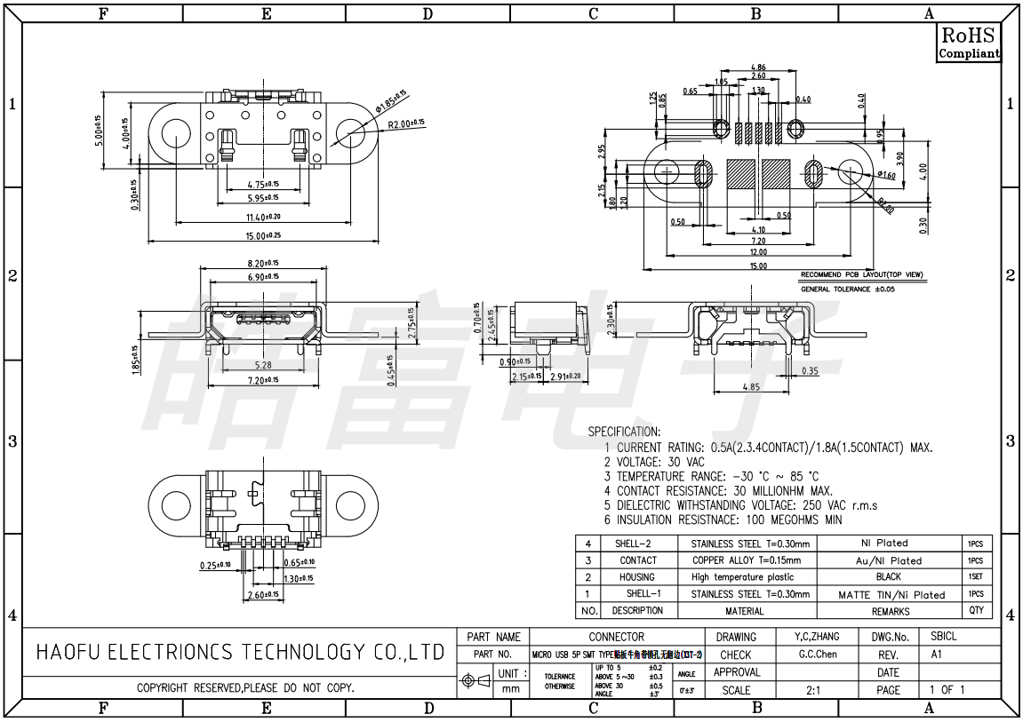 MICRO USB 5P SMT TYPE贴板牛角带锁孔无翻边(X3T-2) 1