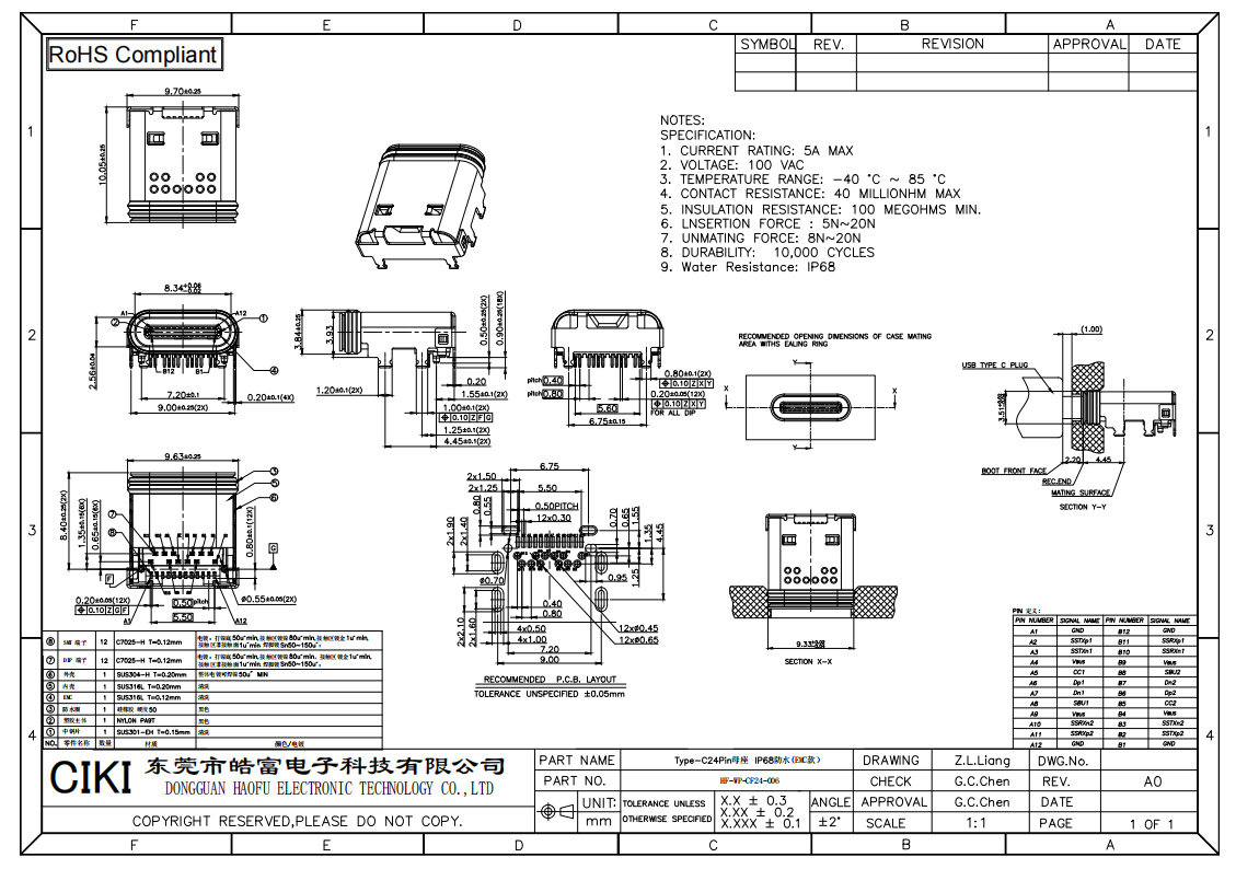 Type-C24Pin 母座