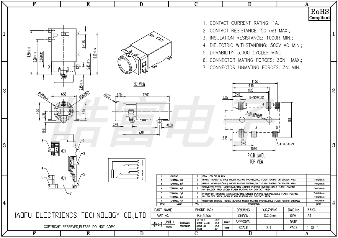 耳机插座PJ35A063-F06G1BR-A
