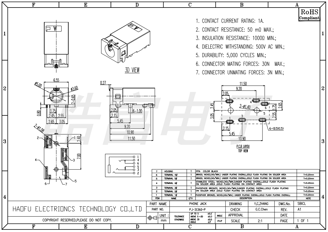 耳机插座PJ35A063-F06G1BR-E