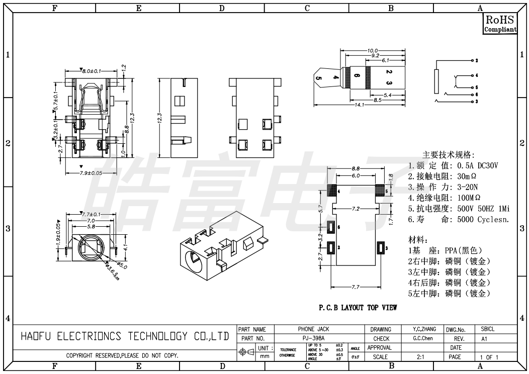 耳机插座PJ-398A