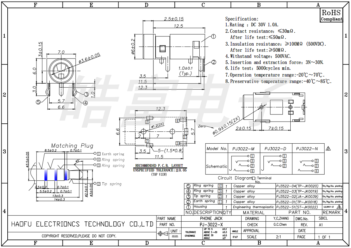 耳机插座PJ3022