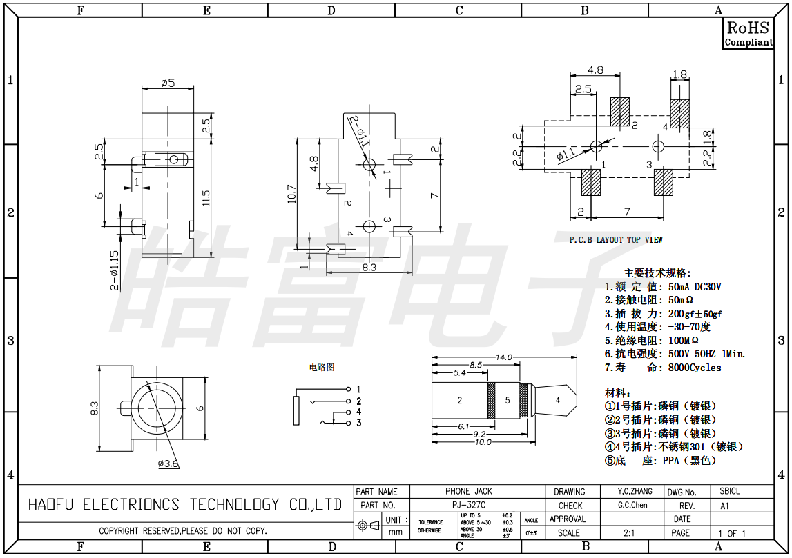 乐伟达耳机插座 PJ-327C